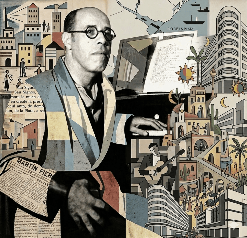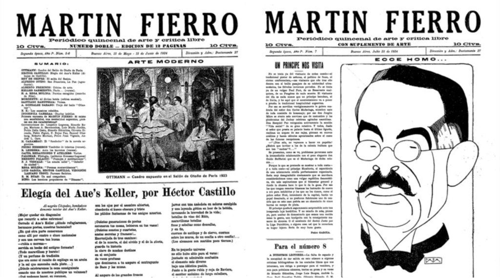 - O nome da revista Martín Fierro foi escolhido em referência ao poema El Gaucho Martín Fierro (1872), obra considerada um dos pilares da identidade literária argentina, escrita por José Hernández, na qual o personagem-título representa o gaucho fora da lei e símbolo da “argentinidade”. ↩︎